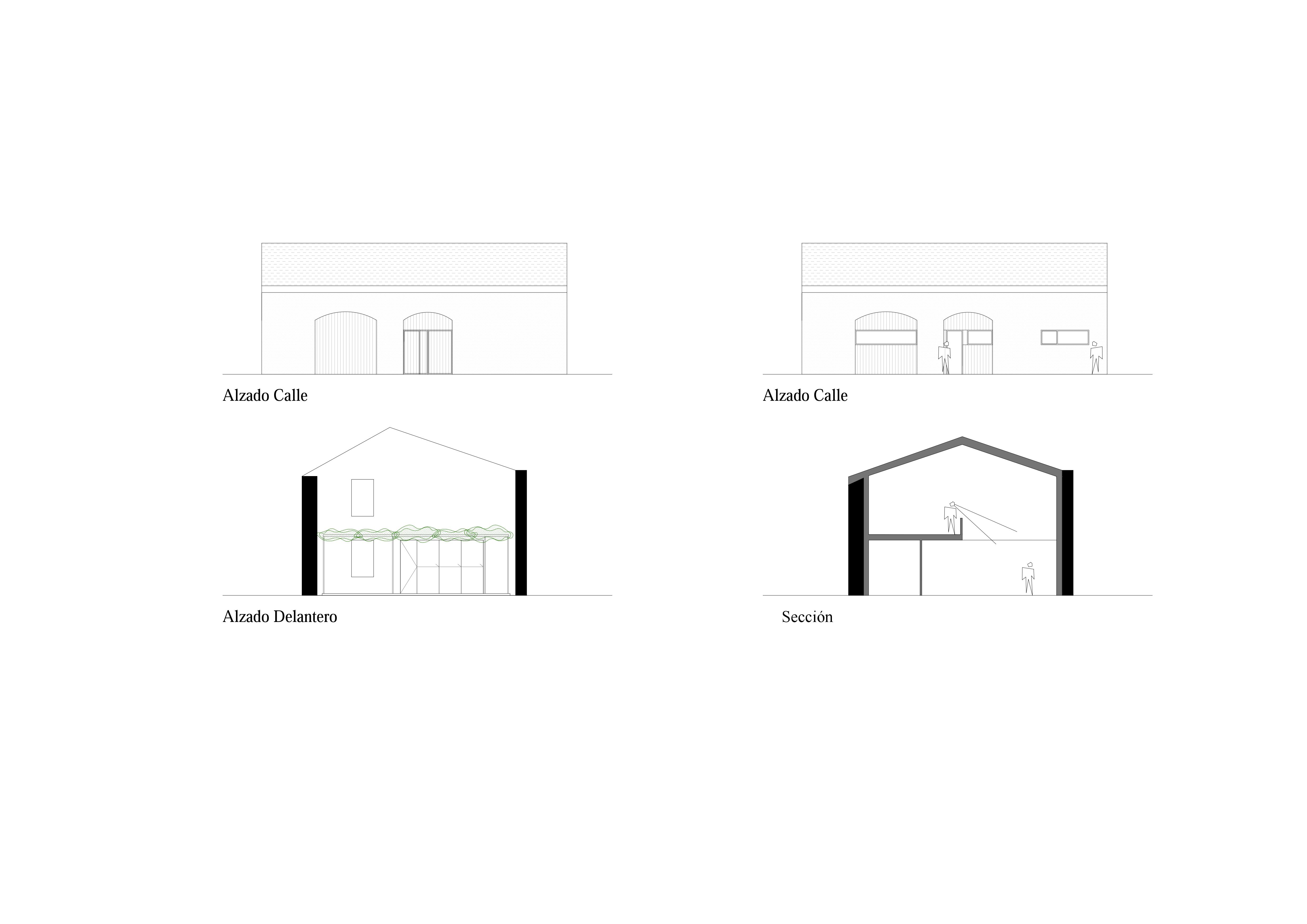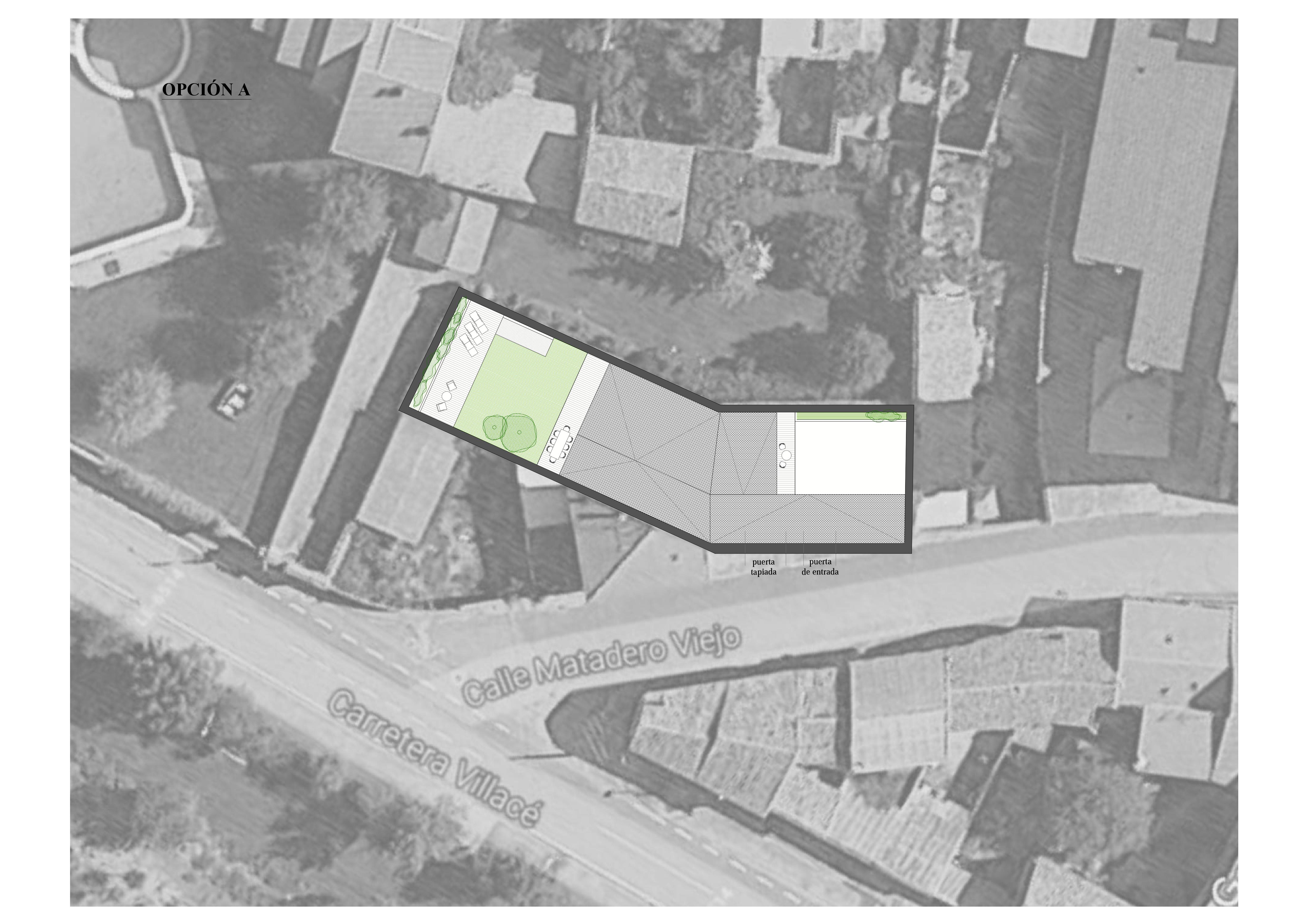 Marzo 2017. Ricardo ha comprado un solar que era el antiguo matadero del pueblo y quiere construirse una casa barata. Es un solar difícil por su geometría y por los muros altos que lo separan de las casas colindantes. Le hago dos propuestas, en ambas se mantiene el aspecto exterior de la fachada y la altura e inclinación de la cubierta.